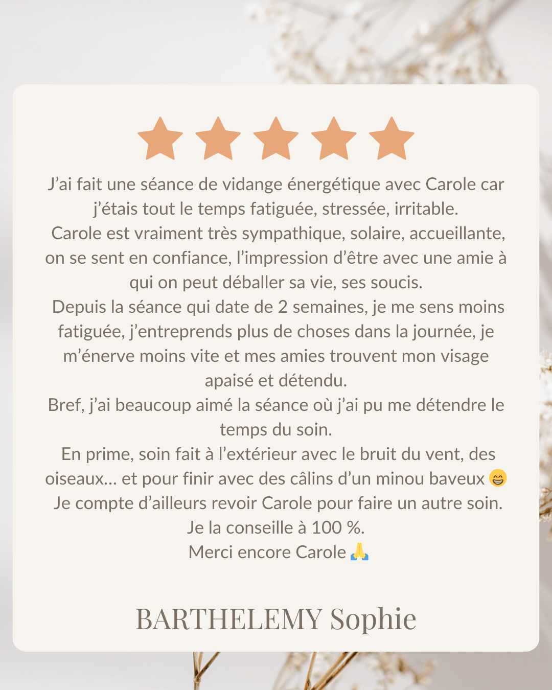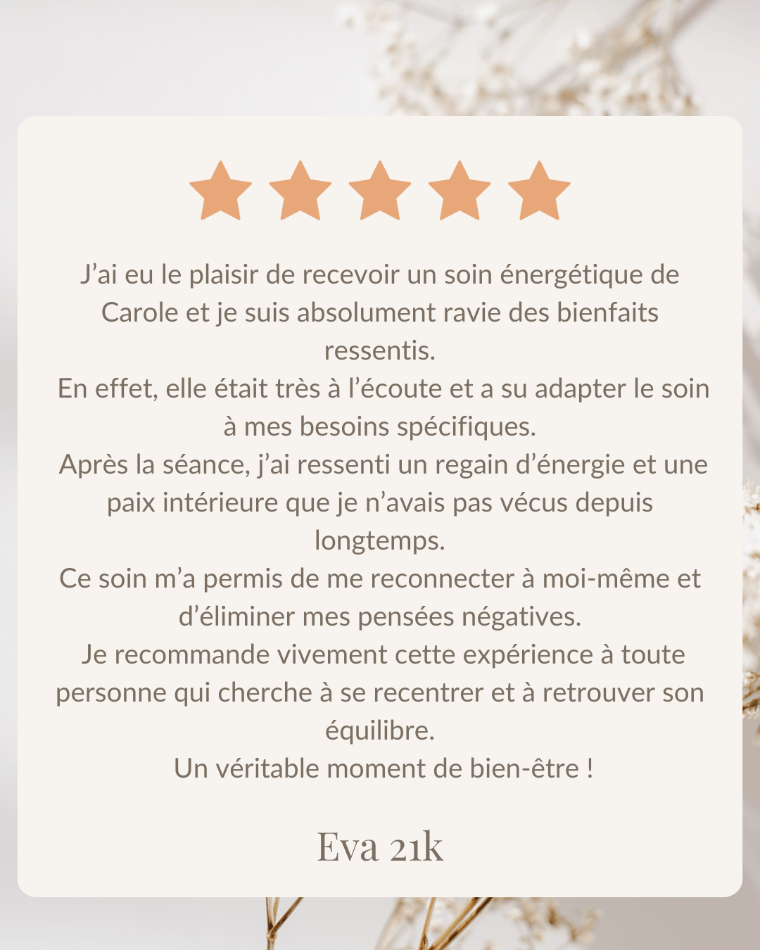 Grâce à une approche holistique, kinésiologie, bioénergie et techniques d’apaisement émotionnel, je vous aide à relâcher les tensions, calmer le mental, réharmoniser votre énergie et retrouver un espace intérieur plus stable et plus serein.